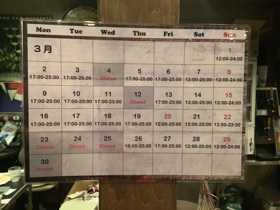 3月の営業予定です。日によって混雑が予想されますので、ご予約お問い合わせはお早めにお願いします。今月も宜しくお願いします。