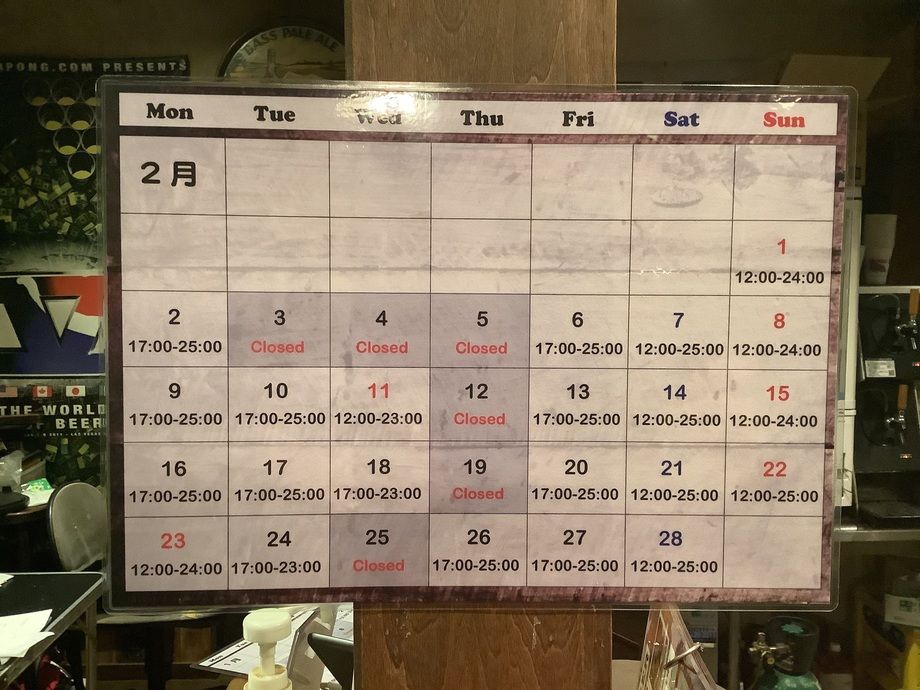 2月の営業予定です。今月も不定休になりますが、宜しくお願いします。